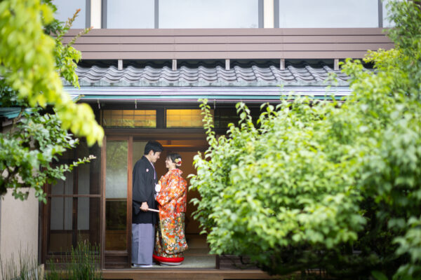 当料亭では、伝統的な神前式から人前式(室内・庭園)まで、お二人の願いを形にする挙式をご提案します。そして、自然光が差し込む美しい会場では、和モダンな空間をバックに、ゲスト全員が特別な瞬間を共有できます。四季折々の日本庭園を眺めながら、ここでしか体験できないウェディングを。