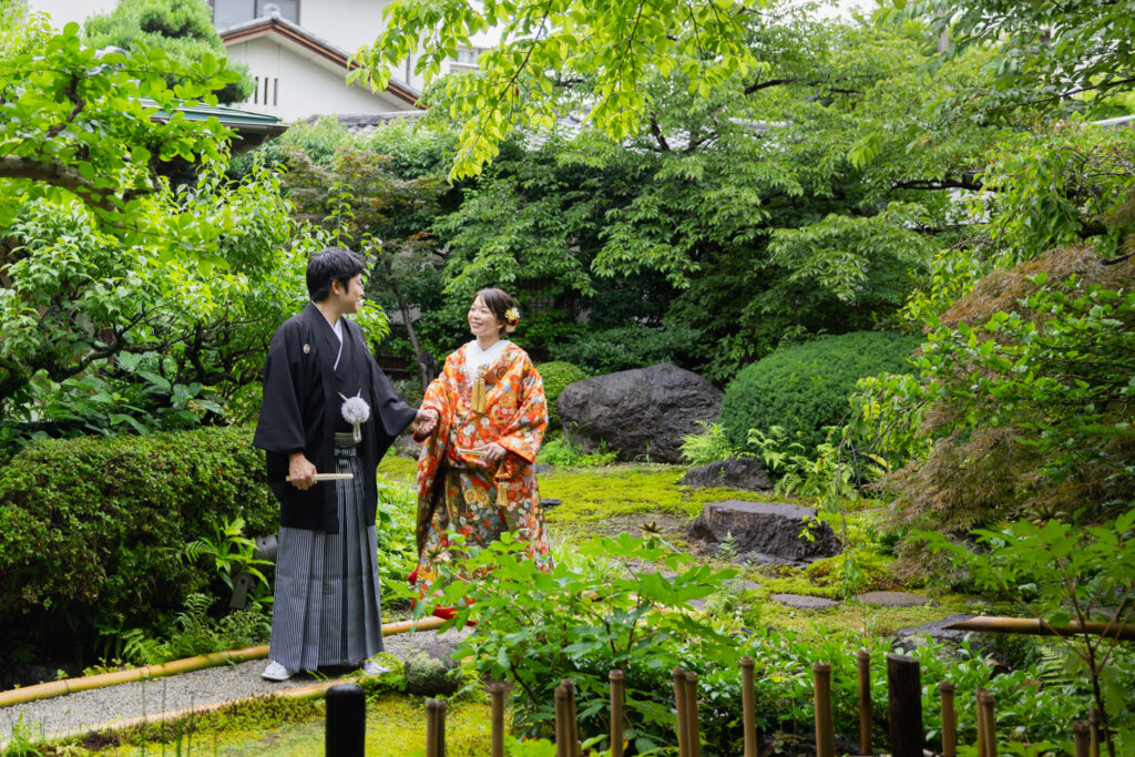 思い出の1日を料亭で。お庭からか茂免のおもてなしは始まっています。