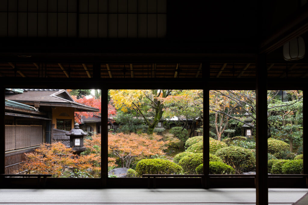 紅葉の季節は、庭園の色づきと建物の佇まいが重なって、とても穏やかな景色になります。その時期は毎年ご希望が多く、日程が早めに埋まりやすい季節です。紅葉はまだ先ですが、庭の広がりや光の入り方は年中感じていただけます。日程限定で試食会も行っておりますので、季節の料理とともにか茂免の雰囲気を味わいにいらしてください。